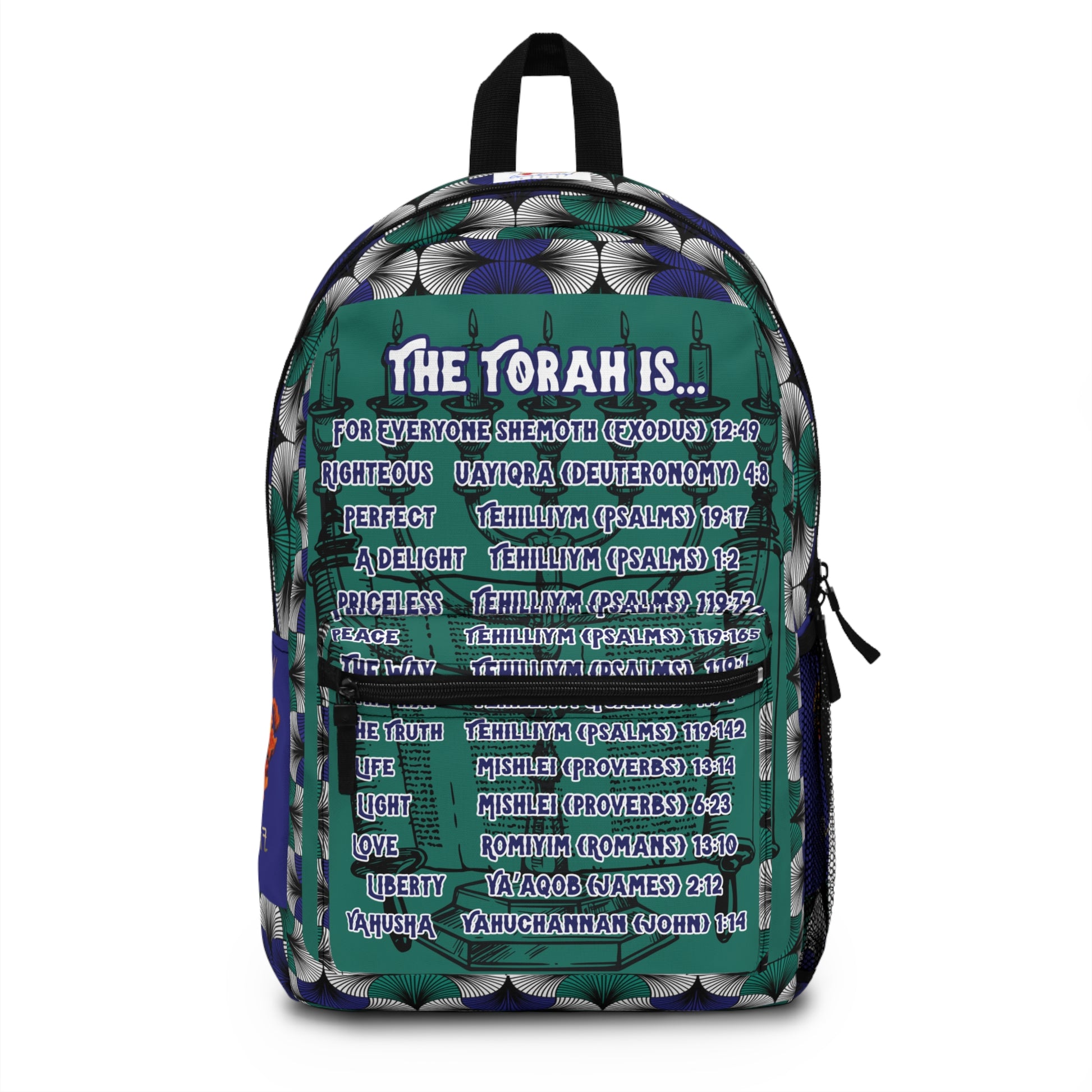 Embrace style and functionality with this vibrant Backpack! It has a beautiful royal blue Kente cloth pattern with the Light of Hope Creations logo at the top, a list of what the Torah is described as according to the Holy scriptures in the front, and the Continent of Africa/Alkebulan along with the Paleo Hebrew name of Yahuah (who the world mistakenly calls God/The Lord) and Yahusha (who the world mistakenly calls Jesus) on the sides. It goes well on its own as well as with the Love Righteousness fits in the Apocryphal Collection. Its eye-catching design brings a sense of joy and creativity, making it the perfect accessory for students, travelers, or anyone on the go. Whether you’re heading to school, a weekend getaway, or a casual outing with friends, this backpack will keep your essentials organized and accessible. It’s especially great for gifts during the back-to-school season, holidays, or any celebration that calls for a stylish and practical touch. Ideal for those who appreciate unique designs infused with cultural significance.