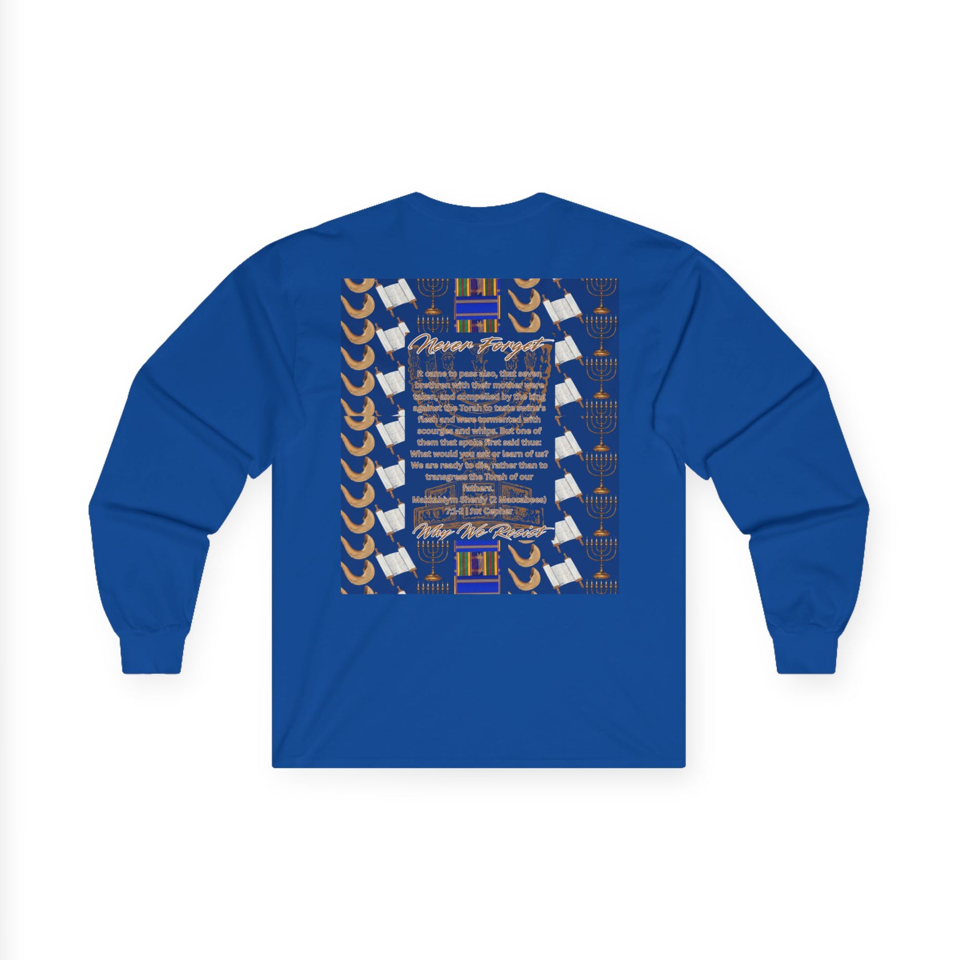 Crafted from premium, soft cotton blend fabric, this long sleeve shirt offers warmth and comfort while you celebrate, study, or gather with family and community. Perfect for Hanukkah events, synagogue gatherings, or as a meaningful gift.