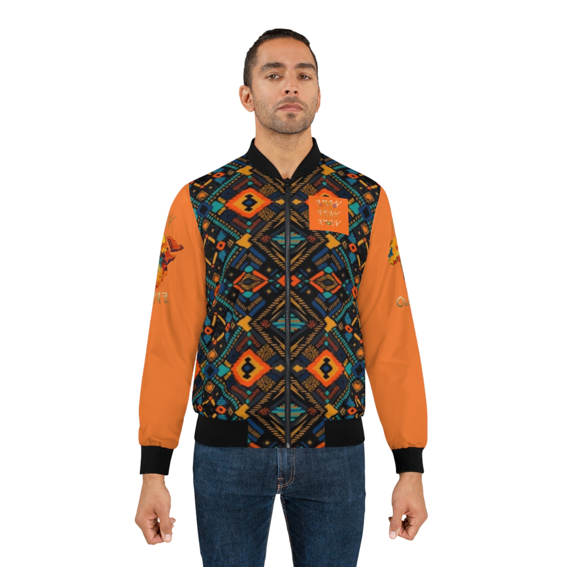Yahuah Is My Light – Blue/Orange Kente Bomber Jacket - Scriptural Affirmations Collection